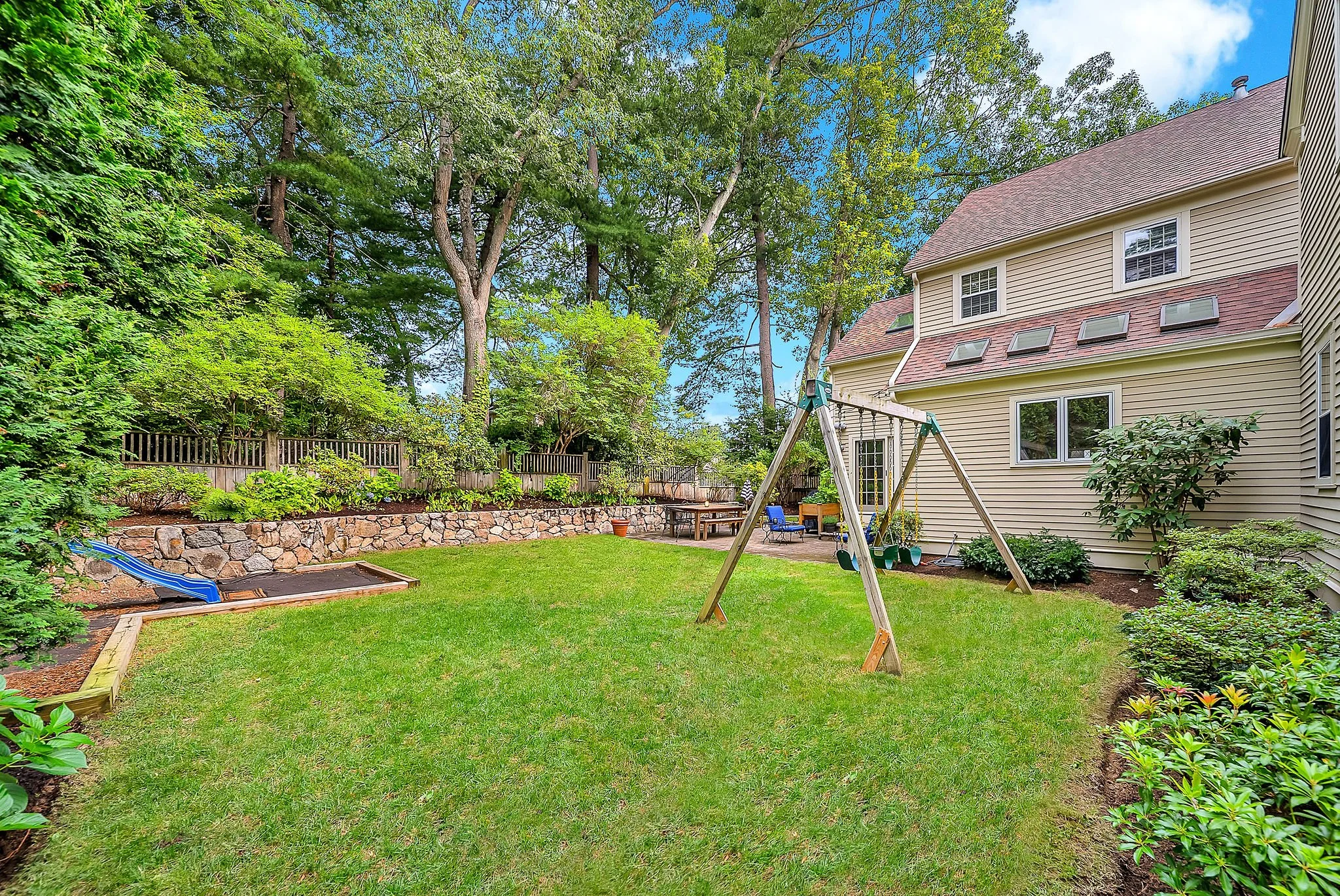 Meticulously updated Colonial in desirable Linden Square. This sun-drenched home features a stunning kitchen with Thermador appliances and a marble island, flowing to a fireplace family room with custom built-ins. Formal living & dining rooms, with new French doors & wainscoting are perfect for entertaining. Primary suite addition (2021) includes walk-in closet & spa bath, plus 4 additional bedrooms with two brand-new en-suite bathrooms (2025). Recent major updates include: dual HVAC systems (2019/2020), Pella windows & doors (2021), renovated mudroom & half bath (2025), refinished floors, and epoxied garage with storage systems. Finished basement offers additional recreation space & storage. Beautifully professionally landscaped with expanded patio, mature trees & low-voltage lighting. Walk to train, schools & shops!
